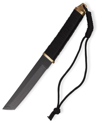 Замість класичної ручки тут використовується мотузкова оплетка, завдяки чому японський ніж танто ідеально лежить в руці, дозволяє міцно і міцно тримати його. Невелика поперечна гарда (від японського hamidashi) ефектно відокремлює клинок від рукояті.