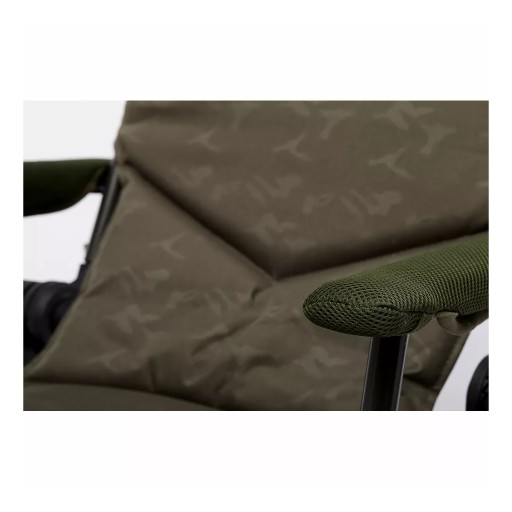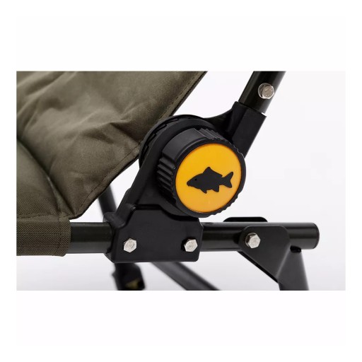 Зручне рибальське крісло середнього розміру з товстою і зручною оббивкою сидінь. Міцна алюмінієва рама. Завдяки регульованим ніжкам і широким ніжкам крісло стійко стоїть навіть на нерівній або дуже м'якій землі. Можливість регулювання кута нахилу сидіння. Зручні підлокітники, оброблені неопреном і м'яка подушка, яка є ідеальною підтримкою для голови, дозволяючи повноцінно розслаблятися біля води в будь-яких умовах. У складеному вигляді займає мало місця при транспортуванні. Цікава пропозиція для рибалок, які цінують комфорт і зручність.