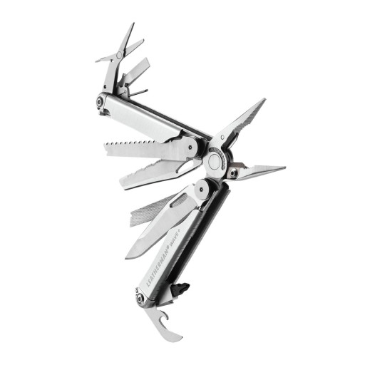 Мультитул Leatherman Wave Plus - це останнє видання бестселера Leatherman. Зручні ручки, можливість відкрити 4 інструменти без необхідності розгортати плоскогубці, включаючи 2 однією рукою та 2 гнізда для змінних наконечників викрутки. Остання версія «плюсової» хвилі має змінні кусачки. Він містить цілих 18 різних інструментів, корисних як для солдатів і військовослужбовців, так і для любителів саморобки та електриків. Легкість мультитула дозволяє брати його з собою куди завгодно.