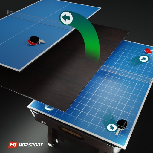 Більярдний стіл Hop-Sport 8 FT Spensers з двостороннім покриттям для настільного тенісу і обідньою стільницею подарує вам задоволення від ігор, зберігаючи при цьому функціональність вашої їдальні.