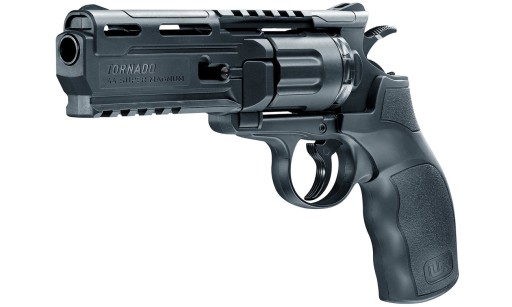 Umarex Tornado 4,5 mm BB CO2 – це ефективний револьвер для пневматичної зброї, який стріляє кулями BB'S, оснащений двома направляючими для аксесуарів і комплектом запасних магазинів.