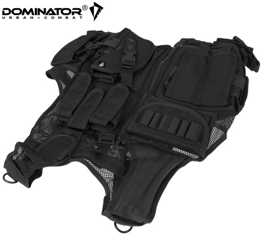 Тактичний жилет Huzar, польський бренд DOMINATOR®. Бренд DOMINATOR® забезпечує дуже високу якість виготовлення на основі військових специфікацій, твердих матеріалів і передових технологій. Він виготовлений з міцного поліестеру, що робить його стійким до розривів і розривів. Сітчаста конструкція забезпечує повітропроникність і комфорт при носінні. Жилет регулюється завдяки трьом лямкам в бічних частинах (регулювання по окружності) і вертикальним широким лямкам на плечах, які регулюються за допомогою липучок (регулювання по висоті). На задній частині є система MOLLE з чотирма ременями та панеллю Velcro, що дозволяє використовувати емблеми, знаки розрізнення, нашивку моралі та назви підрозділів.