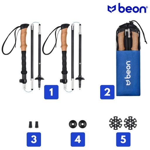 1️⃣ 2 трекінгові палиці Beon Fold Black