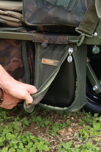 Тачка Explorer має безліч чудових функцій і включає центральну сумку з тканини Fox Camo та дві сітчасті кишені з обох боків колеса. Це ідеальний варіант для зберігання таких предметів, як 5-літрові ємності з водою або приманки. Тачка Explorer — ідеальна тачка для коротких щоденних занять. І основна сумка, і дві кишені мають зовнішні блискавки, тому ми маємо дуже легкий доступ до них без необхідності діставати речі з самої тачки.