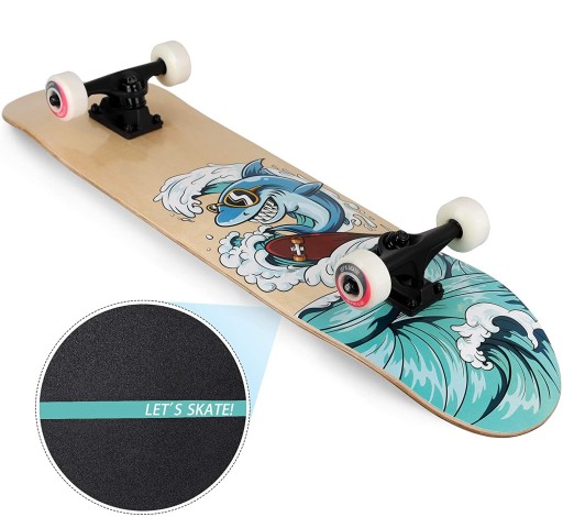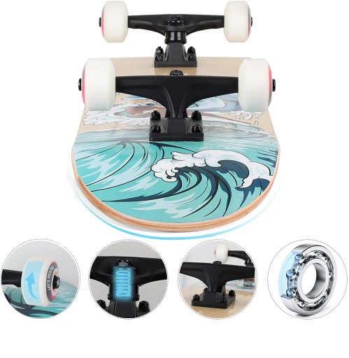 Скейтборд Funxim: повнорозмірний увігнутий скейтборд з подвійним ударом розміром 31 x 8 дюймів, оновлені поліуретанові колеса 52 x 36 мм для більшого комфорту. Колісна база 18" Підходить для початківців і базових скейтбордингових доріг. Максимальне навантаження: 100 кг.