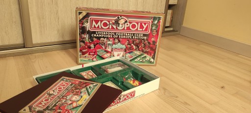 Monopoly, обмежене видання, випущене на честь перемоги Ліверпуля в Лізі чемпіонів у 2005 році. Справжній унікальний предмет, блискучий предмет для вболівальників/колекціонерів Ліверпуля/любителів настільних ігор і футболу. Все англійською. Гра не використовувалася, елементи всередині (картки, банкноти) ще в оригінальній фользі. Єдиний недолік - мінімальне потертість коробки.