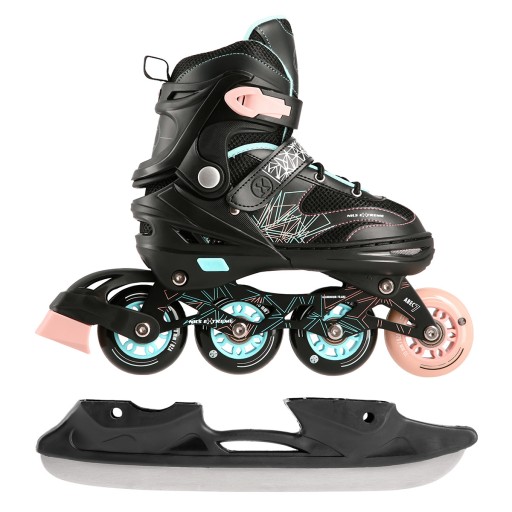 Роликові ковзани NH18192 - це справжнє задоволення від катання. Завдяки можливості перенесення додаткового колеса на задню вісь, роликовий ковзан функціонально перетворюється на роликовий ковзан. Таке рішення допоможе самим маленьким фігуристам зробити перші кроки в цьому виді спорту. У свою чергу, установка додаткового колеса на передню вісь перетворює виріб на роликовий ковзан. Ролик оснащений спеціальним алюмінієвим полозом і гальмом, що забезпечує безпеку під час катання. У свою чергу, колеса та підшипники класу ABEC7 дозволяють знизити опір коченню, тобто швидше їздити.