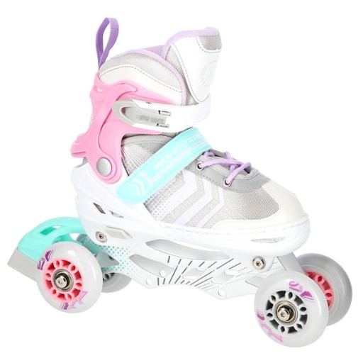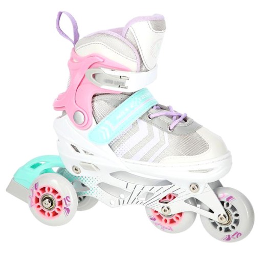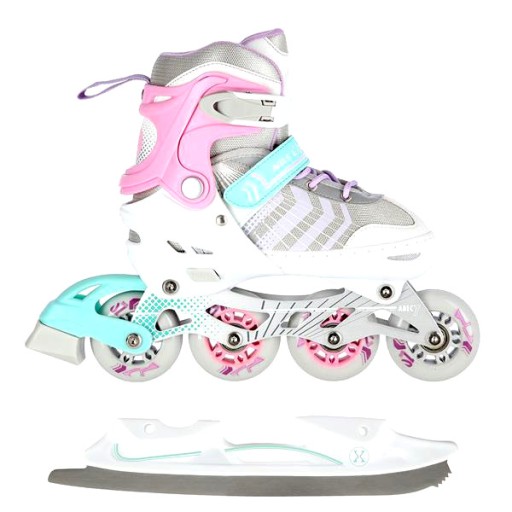 Роликові ковзани NH18192 - це справжнє задоволення від катання. Завдяки можливості перенесення додаткового колеса на задню вісь, роликовий ковзан функціонально перетворюється на роликовий ковзан. Таке рішення допоможе самим маленьким фігуристам зробити перші кроки в цьому виді спорту. У свою чергу, установка додаткового колеса на передню вісь перетворює виріб на роликовий ковзан.