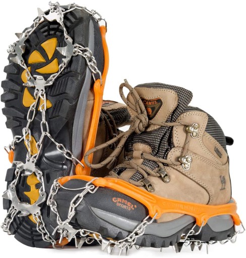 Шипи та ланцюг виготовлені з високоміцної нержавіючої сталі, тому вони ніколи не гнуться. Конструкція з подвійним ланцюгом робить його довговічнішим і міцнішим. З покращеним зчепленням і зчепленням, а також гнучкістю, стійкістю до стирання, що забезпечує щільне прилягання взуття, щоб зменшити ризик отримання травми від падіння або ковзання.