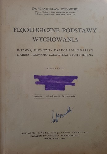 : Унікальна довоєнна книга Dr. Владислав Дибовський – доцент Львівського університету Яна Казимира, секретар медичної комісії Наукової ради фізичного виховання, присвячений фізичному розвитку дітей та підлітків. Автор описує біологічні основи розвитку молоді та актуальні на той час принципи гігієни в окремі періоди: дитинство, раннє дитинство, пізнє дитинство, підлітковий та юнацький вік. Дає поради щодо правильного харчування дітей, рекомендованих фізичних вправ, профілактики різних захворювань. Книга ілюстрована чорно-білими гравюрами.