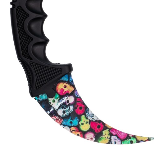 Культовий керамбітовий ніж з незаточеним лезом і тупим скошеним кінчиком можна використовувати як для виконання трюків, так і для презентації в колекції. Вигнуте лезо надає йому загрозливу форму. Проста і міцна конструкція ножа забезпечує довговічність і високу якість. Ніж має пластиковий чохол, який захищає його під час зберігання, а також мотузку для підвішування в будь-якому місці. Унікальна форма карамбітів відома всьому світу з фільмів, ігор та Інтернету. Він зручний для користувача і відрізняється своїм стилем.