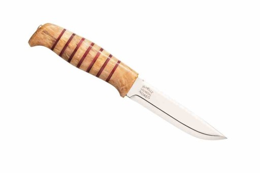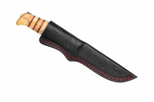 Піхви, виготовлені з оригінальним принтом Helle 1930-х років, виготовлені в чорному кольорі з червоним швом на честь кузні, де дід Яна Штеффена відповідав за її роботу.