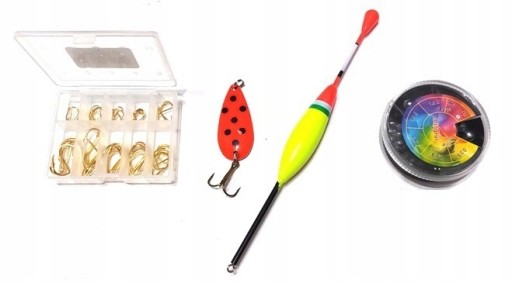 А до кожного набору додаємо 100 м волосіні, коробку гир, поплавок, близько 70 гачків, блешню. Поплавці та блешні вибираються випадковим чином, залежно від запасу. Котушки також доступні в чотирьох кольорах - відправляємо випадковим чином.