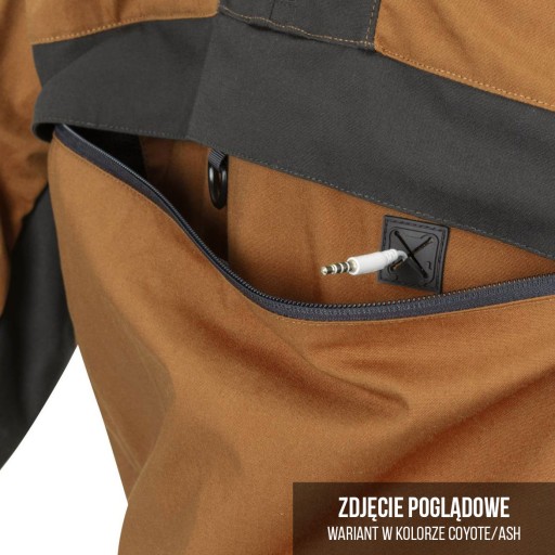 Куртка-анорак, виготовлена в рамках лінії Helikon-Tex Bushcraft. Спереду використовується тканина DuraCanvas, стійка до іскор і механічних пошкоджень. Спинка виконана з еластичної тканини StormStretch, завдяки чому куртка не сковує рухів. Все це дихаюче і вітронепроникне.