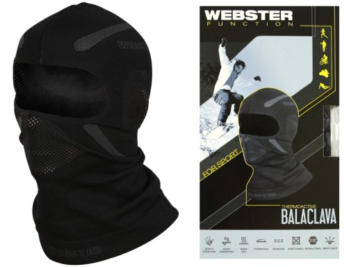 WEBSTER BALACLAVA - ідеально адаптується до форми голови, забезпечуючи високий комфорт і захист від потертостей. Спеціальний комір захищає підборіддя, шию і декольте, захищає від вітру і холоду. Внутрішній шар з поліестеру відмінно відводить вологу до другого шару, який призначений для її відведення назовні. Поліамід, що міститься в зовнішньому шарі, має теплоізоляційну функцію і стійкий до бактерій і грибків, що забезпечує тривалий комфорт використання. Поєднання міцних поліефірних волокон з еластичним поліамідом забезпечує захист від потертостей і відповідає за ідеальне прилягання до форми голови і шиї. Продукт рекомендований для цілорічного використання.