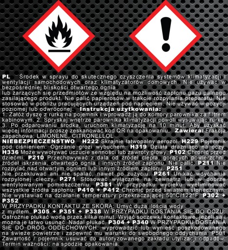 Щоб безпечно використовувати AAB CLEAN AIR KLIMA FRESH, прочитайте паспорт безпеки та/або етикетку продукту та дотримуйтесь заходів безпеки: