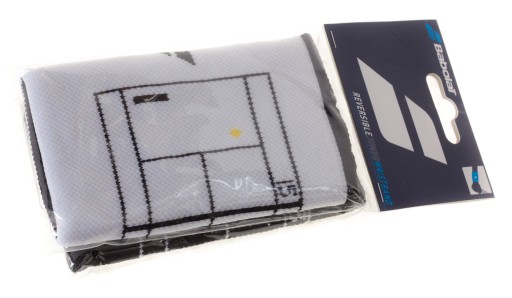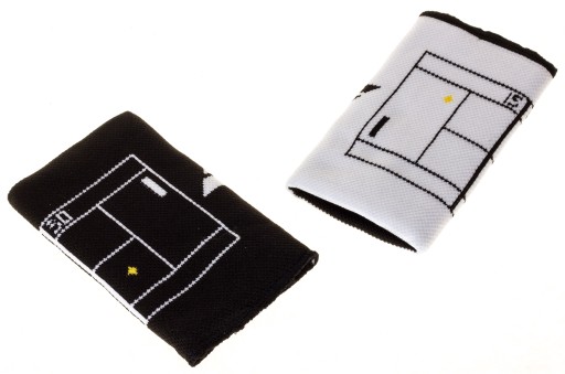 Двосторонній браслет, чорний з білими лініями корту з одного боку, білий з чорними лініями корту з іншого. Він запобігає стікання поту з ваших рук на ручку ракетки і допоможе витерти піт з чола. Новий матеріал, який швидко сохне і менше віджимається руками.