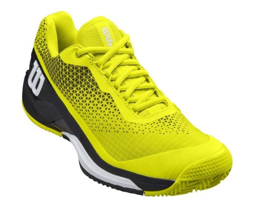 Wilson Rush Pro 4.0 Clay Men - оновлена версія перевіреної і визнаної моделі. Структура верху була посилена, що робить його ще більш міцним. Також застосована нова технологія, яка значно покращує роботу взуття. Модель забезпечує чудову стабілізацію та амортизацію, зберігаючи належний рівень комфорту гри. Зони сітчастої панелі відповідають за відмінну вентиляцію і повітропроникність. Взуття відповідним чином посилене в критичних частинах, що збільшує його довговічність. Постійно прикріплений язичок покращує стійкість стопи всередині взуття. Використовувалися такі технології: 4D SUPPORT CHASSIS, ENERGY CELL, R-DST+, DURALAST, SENSIFEEL 2.0, ENDOFIT, MEDIAL RUBBER DRAG PAD, DF2.