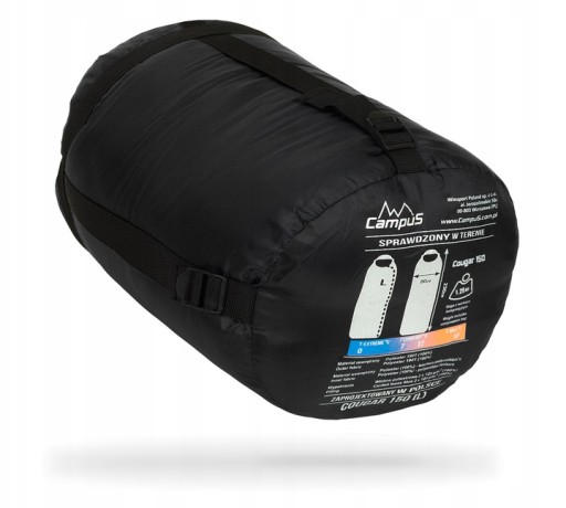 Якісний спальний мішокCampus 2-in-1 Cougar 150. Дана модель є універсальним поєднанням спальних мишок типу мумія та ковдри. Спальний мішок Cougar 150 має ряд переваг, які випливають з такого комбінованого і ковдри (без капота). Він характеризується чудною якістю виготовлення та інноваційні в дизайні. Тришарова конструкція для захисту комфортної температури від +7 до +12 °C. Завдяки своїй конструкції пальний мишок можна використовувати під час кемпінгу, так і під час туристичних подорожей. Спальник має можливість з'єднання (ліва + права блискавка).