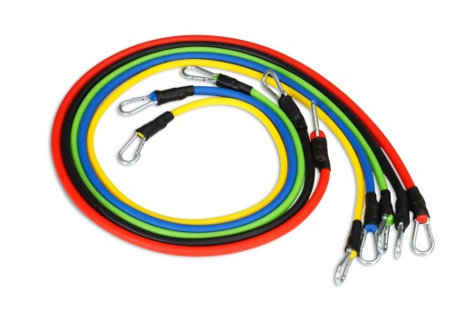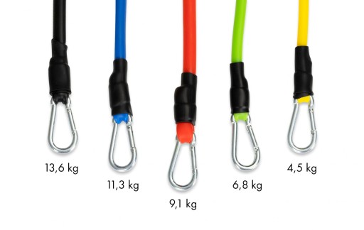 Кожна з п'яти смуг опору, що входять до комплекту, створює різне навантаження - від 4,5 до 13,6 кг. Завдяки регульованій системі кріплення ви самі визначаєте інтенсивність тренувань. Ви можете виконувати вправи, використовуючи лише одну вибрану стрічку або з’єднати декілька стрічки разом, збільшуючи таким чином навантаження під час тренування. Встановивши всі гумки, що входять в комплект, можна досягти тиску до 45 кілограм.