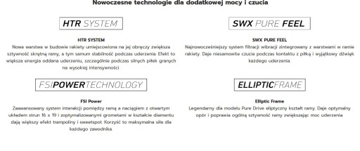 - Максимальна потужність м'яча: завдяки новій системі HTR, легендарній еліптичній рамі та струнній системі FSI Power з оптимізованою потужністю