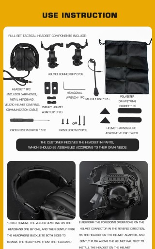 Гарнітура * 1 шт., мікрофон * 1 шт., роз’єм для шолома * 2 шт., деталь для переходу на рейку * 2 шт., кишеня для шнурків * 1 шт.