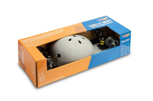 Dexter - набір, що складається зі скейтборду, шолома і набору протекторів. Fiszka - популярний і модний варіант класичного скейтборду, який чудово розвиває координацію рухів дітей. Його невеликий розмір і невелика вага дозволяють дітям легко брати його куди завгодно. Катання на скейтборді зміцнює м’язи та покращує баланс. Широкі колеса полегшують долання нерівностей, а розміщені в них світлодіоди роблять вечірню їзду ще веселішою. Дека дошки виготовлена з міцного пластику і покрита спеціальною протиковзкою наклейкою. До складу скейтборду входить шолом (розмір 50-54 см) та налокітники та наколінники.