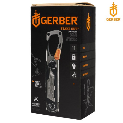 GERBER STAKE OUT CAMP TOOL - УНІВЕРСАЛЬНИЙ МУЛЬТИІНСТРУМЕНТ ДЛЯ ЗОВНІШНЬОГО ДИСКУ / BUSHCRAFT, 11 ФУНКЦІЙ