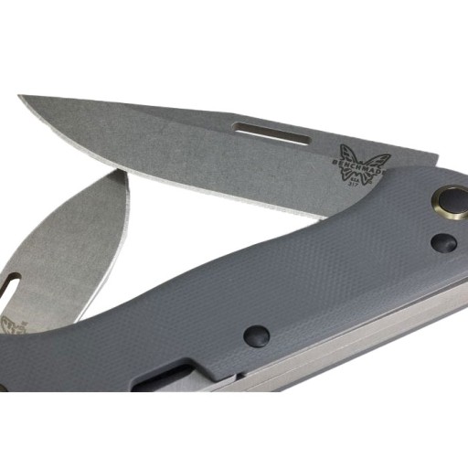 Benchmade 317 Weekender — це пропозиція для людей, які шукають класичний складаний ніж, який можна взяти з собою в ліс, намет або в похід. Ніж має два леза різного розміру та зручну відкривачку для пляшок. Леза Satin droppoint і clip-point виготовлені з цінної нержавіючої сталі CPM-S30V. Порошкова сталь Crucible Industries S30V загартована до оптимальної твердості 58-60 HRC, завдяки чому довго зберігає високу гостроту, має високу механічну міцність, а також стійка до корозії. Завдяки високому вмісту карбідів ванадію сталь відрізняється високою ударною міцністю, стійкістю до стирання і відмінними ріжучими властивостями. Леза оздоблені традиційною технікою сатинування.