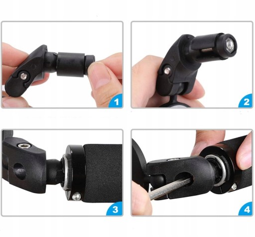 - Надійно встановлено за лічені хвилини - 1. Дзеркало вирівнює поверхні під кутом для з'єднання кінця керма; 2. Повністю вставте розпірний болт точки з’єднання в кінець керма; 3. За допомогою шестигранного ключа (входить в комплект) затягніть і встановіть у потрібне положення.