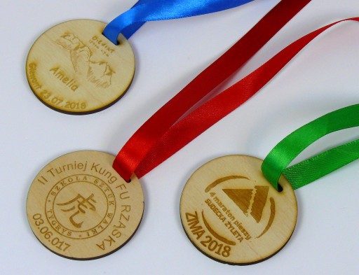 Медалі виготовлені з високоякісної натуральної березової фанери товщиною 4 мм, точна вирізка та лазерне гравіювання.