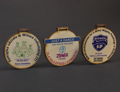 Медалі вирізані за допомогою лазерної технології, а графіка на них виконана за інноваційною технологією УФ-друку. Нашу продукцію відрізняє висока якість, естетичність і чудова передача кольору. Крім того, друк міцний і стійкий до будь-яких видів пошкоджень, таких як подряпини, стирання графіки або шкідливий вплив атмосферних факторів (волога, вода, сонце).