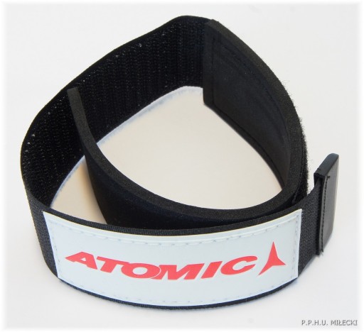 Великий логотип ATOMIC з обох сторін застібки (при застібанні на лижі)