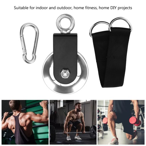 Специфікація: Тип елемента: Матеріал шківа: Алюмінієвий сплав + сталь Колір: Як показано на малюнку Застосування: Для фітнесу в приміщенні, тренажерного залу Вага брутто: Приблизно 621 г / 21,9 унцій Максимальне корисне навантаження: 350 фунтів