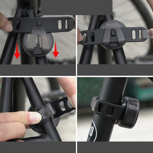 Завдяки кронштейну, що входить у комплект, установка надзвичайно проста та інтуїтивно зрозуміла. Кріпильна стрічка зроблена з гуми, тому не подряпає велосипед під час встановлення та використання.