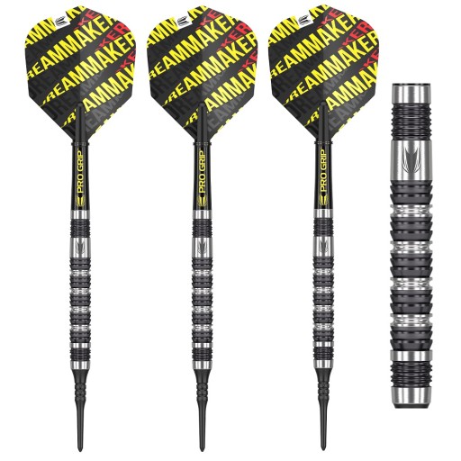 Дартс-мішень із підписом Димитрія ван ден Берга. Версія G2 з 80% вмістом вольфраму була прийнята бельгійським конкурентом.