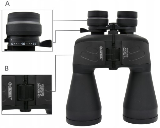 Бінокль туристичний для орнітологічних та аматорських астрономічних спостережень зі змінним зумом х10-х80 і ширококутними об'єктивами діаметром 90 мм.