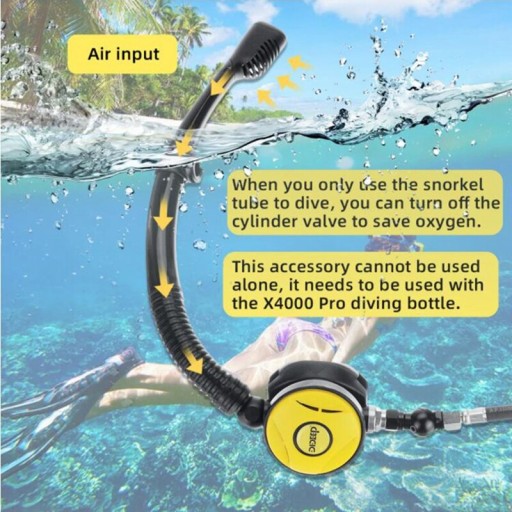 Підводне плавання + дайвінг Дизайн 2 в 1. Під час занурення з трубкою для підводного плавання ви можете вимкнути клапан балона, щоб заощадити кисень.