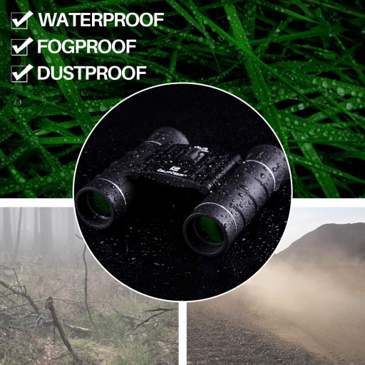 Висока потужність - невеликий бінокль має 10-кратне збільшення та об'єктив 25 мм. Він фокусується на цілі, забезпечуючи чудову деталізацію на відстані до 1000 м. Усі лінзи виготовлені з призм BAK-4 і багаторазово покриті зеленим покриттям FMC, світлопропускання може становити до 99,5%. На відміну від інших, у булі з одним покриттям, зображення не дуже чітке і навіть має колірну аберацію. Низьке освітлення вночі: маленький бінокль можна використовувати для нічного бачення з невеликим освітленням, але не для абсолютно темної ночі. Водонепроникний і не ковзає: міцна нековзаюча рукоятка з гумовою текстурою запобігає необережним падінням або випадковим ударам. Цей міцний бінокль є водонепроникним (клас IP5). Ви можете використовувати цей міні-бінокль у різних ситуаціях повсякденного життя. Легкий і складаний: кишеньковий бінокль легкий і складається. Поставляється з портативною сумкою та ременем на шию в упаковці, дуже зручно та легко носити, підходить для полювання, походів, огляду визначних пам’яток, огляду, вітрильного спорту, спостереження за птахами, концертів, спорту на відкритому повітрі тощо.