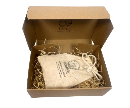 Все упаковано в джутовий мішок, наповнений сіном, яке також можна використовувати як перекус для коня.