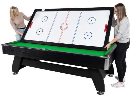 У наборі ви отримаєте накладку, яка дозволить перетворити ваш більярдний стіл на поле для настільного тенісу та аерохокею.