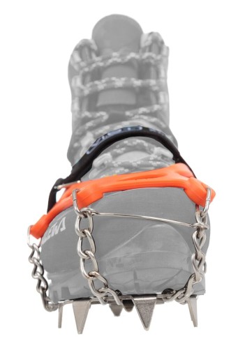 ✔️ Нижня частина ручок виготовлена з міцної нержавіючої сталі. На трьох пластинах стратегічно розташовано 13 шипів, які ефективно гарантують стабільність. Дві передні пластини з'єднані шарнірами. Задня пластина з'єднана з передніми за допомогою рухомих ланцюгів. Завдяки такій конструкції ручки легко встановлюються практично на будь-яке трекінгове взуття, включаючи моделі з м'якою підошвою.