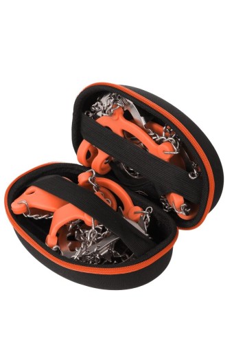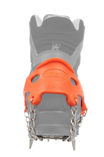 ✔️ Верхня частина виконана з пластику, стійкого до низьких температур. Він настільки гнучкий, що надягати кошки швидко і без проблем. Передня та задня сторони (передня/задня сторона) чітко позначені, щоб полегшити правильне вставлення. Крім того, верхня частина ручки стабілізована стрічкою Velcro. Це запобігає випадковому зісковзуванню взуття.