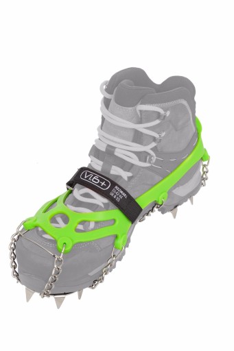 ✔️ Верхня частина виконана з пластику, стійкого до низьких температур. Він настільки гнучкий, що надягати кошки швидко і без проблем. Передня та задня сторони (передня/задня сторона) чітко позначені, щоб полегшити правильне вставлення. Крім того, верхня частина ручки стабілізована стрічкою Velcro. Це запобігає випадковому зісковзуванню взуття.