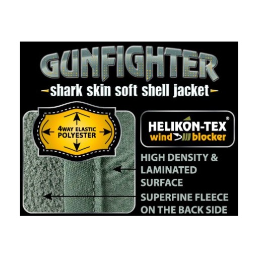 Helikon Gunfighter - легка і дуже практична куртка софтшелл. Він виготовлений з 3-шарового гнучкого матеріалу Shark Skin, який забезпечує чудову ізоляцію та захист від вітру та вологи, зберігаючи при цьому високий рівень повітропроникності. Ззовні світшот покритий тефлоновим покриттям DuPont, яке захищає від бруду та води. Зсередини обшита м'яким флісом. Куртка має сім кишень, прихований у комір і регульований капюшон, вентиляційні блискавки під пахвами, липучки на манжетах і рант. Капюшон можна зручно регулювати, не виймаючи рук з кишень, за допомогою шнурків, захованих у нагрудних кишенях.