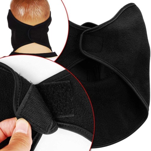 Маска закриває шию і обличчя до рівня щік, має отвір біля ніздрів і вентиляційний отвір збоку від рота - не пропускає холодне повітря прямо в горло.