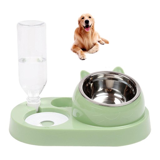 Дизайн подвійної чаші 4 в 1, одна з нержавіючої сталі для їжі, пластикова з автоматичною пляшкою для питної води, інша маленька для м’яса домашніх тварин