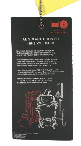 Пакет ABS Vario Cover [ak] 23L Pack поєднує в собі найвищу функціональність [ak] із передовою системою лавинної подушки. Просто застебніть чохол [ak] на подушку безпеки ABS Vario Base Unit (продається окремо), щоб отримати безпроблемний пакет, у якому можна зберігати все ваше спорядження для безпеки в глушині, а також запропонувати вертикальні та горизонтальні варіанти перенесення дошки.