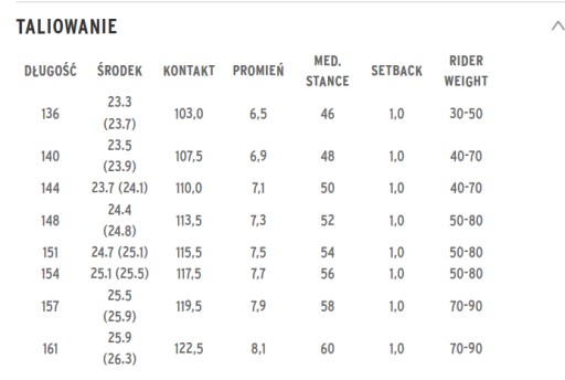 - CAMBER: Hybrid Camber Pop - поєднання конструкції розвалу під кріпленнями та плоскої конструкції між ними для ще більших можливостей під час гірської їзди.