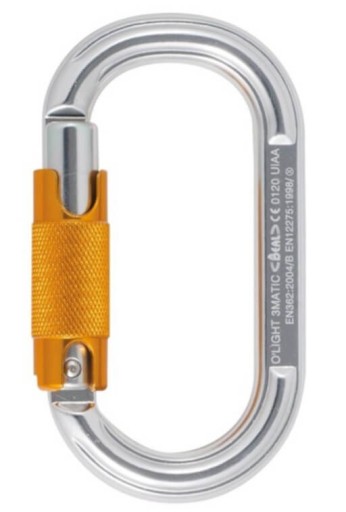 Симетричний алюмінієвий карабін овальної форми для з'єднання пристроїв з двома обмотками, таких як шківи, хомути для мотузок, самостраховки тощо.